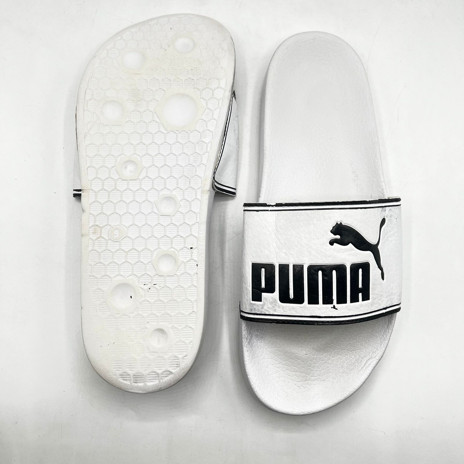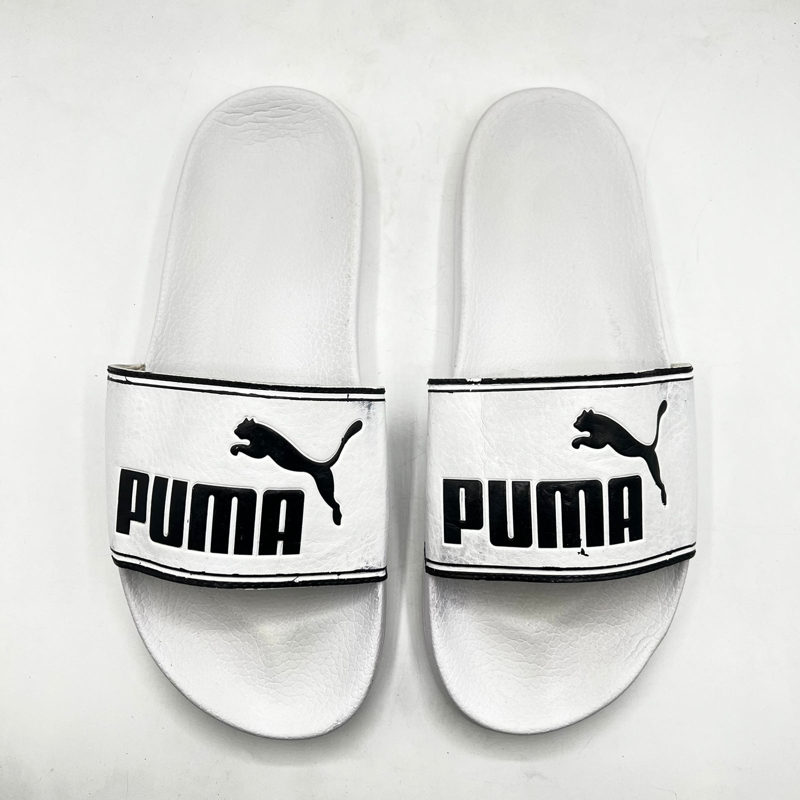 • Design: The white strap features a large black Puma logo and jumping cat graphic.